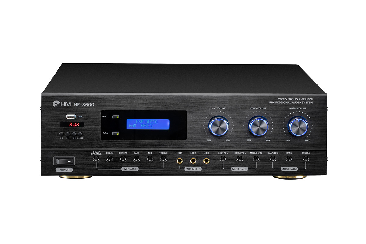 HE-8600合并式⾳频功放适合于专业娱乐场所和家庭娱乐卡拉0K使⽤,采⽤⾼品质数字混响芯⽚,具有卓越的卡拉0K演唱效果。可独⽴调节话筒、⾳乐、合成信号的⾳量、⾳调及相关功能,是专业⼈⼠⾸选产品。¥ 0.00立即购买